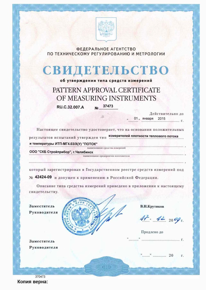 Измеритель плотности тепловых потоков ПОТОК ИТП-МГ4 позволяет измерять температуру воздуха внутри и снаружи помещения, а также определять сопротивление теплопередаче и термическое сопротивление ограждающих конструкций и изделий по ГОСТ 26254 и 26602.1.